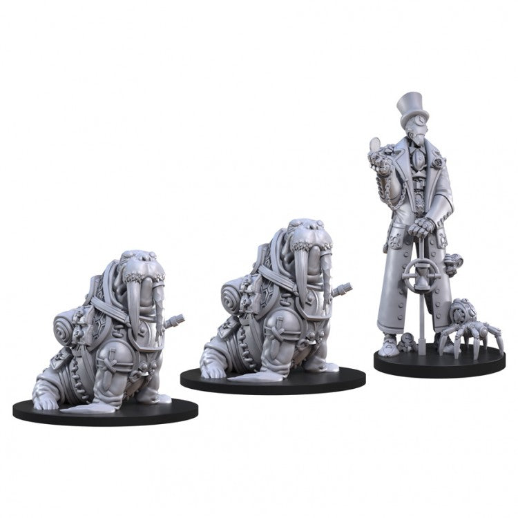 Meet the mysterious Mr. Fugit in your next roleplaying game! Flanked by his imposing Walrus bodyguards, Mr. Fugit is a man with a lot of time on his hands — literally. Find out what secrets he and his henchmen are hiding with the Time in a Bottle set.