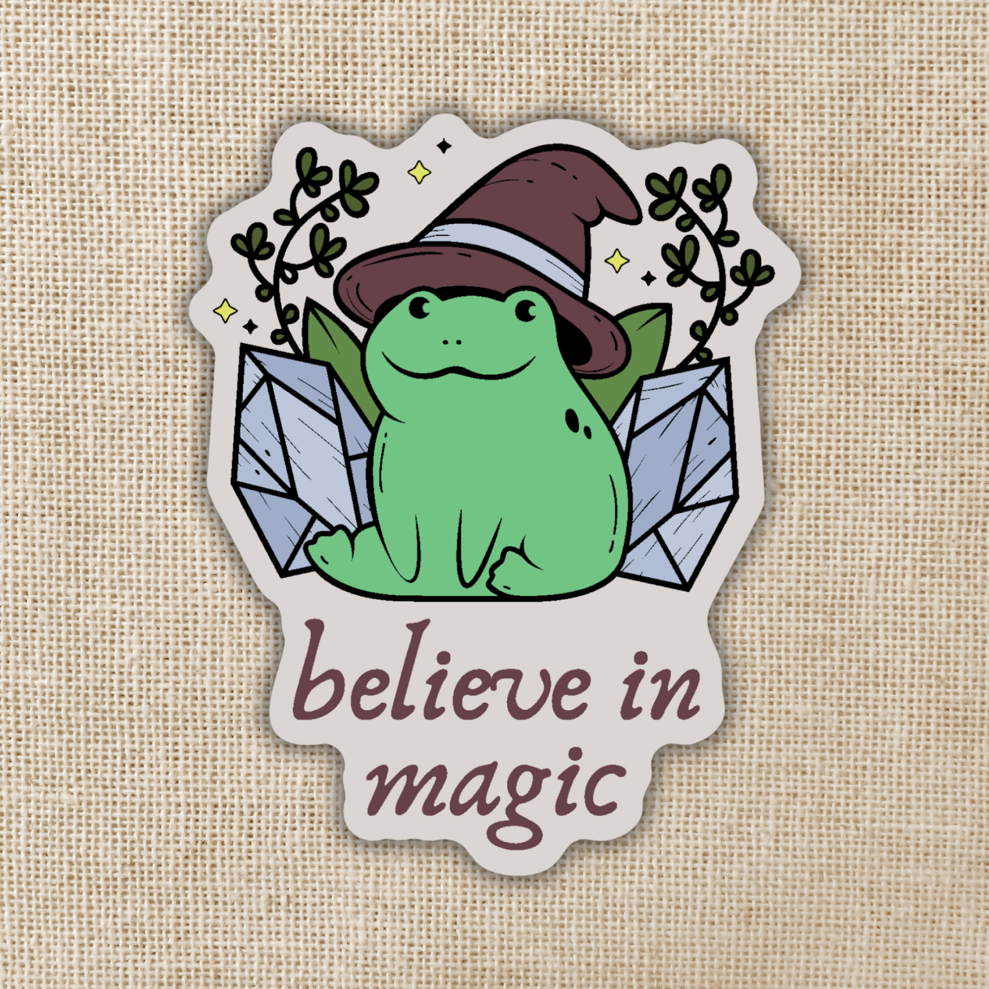 An adorable witchy frog reminding you to never stop believing in magic!