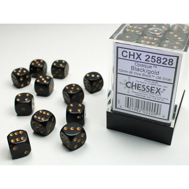 36D6 Opaque Dice Set | Black/Gold