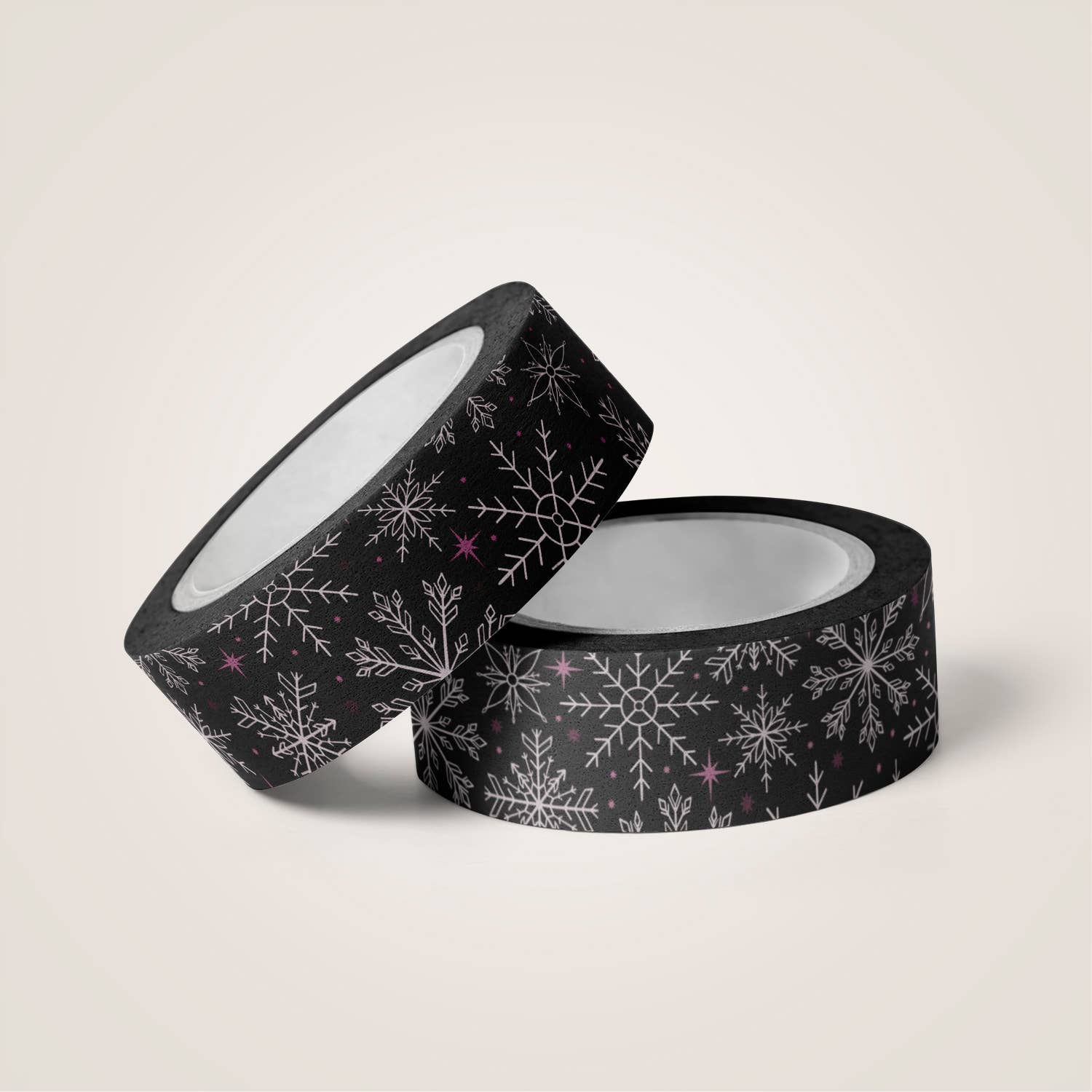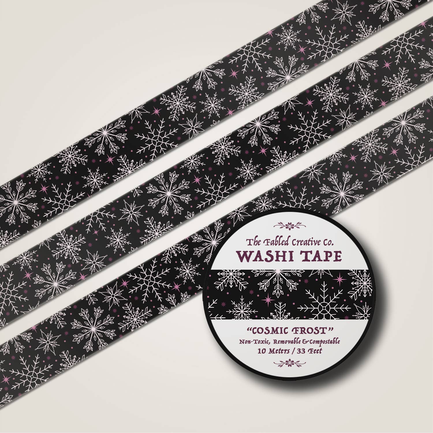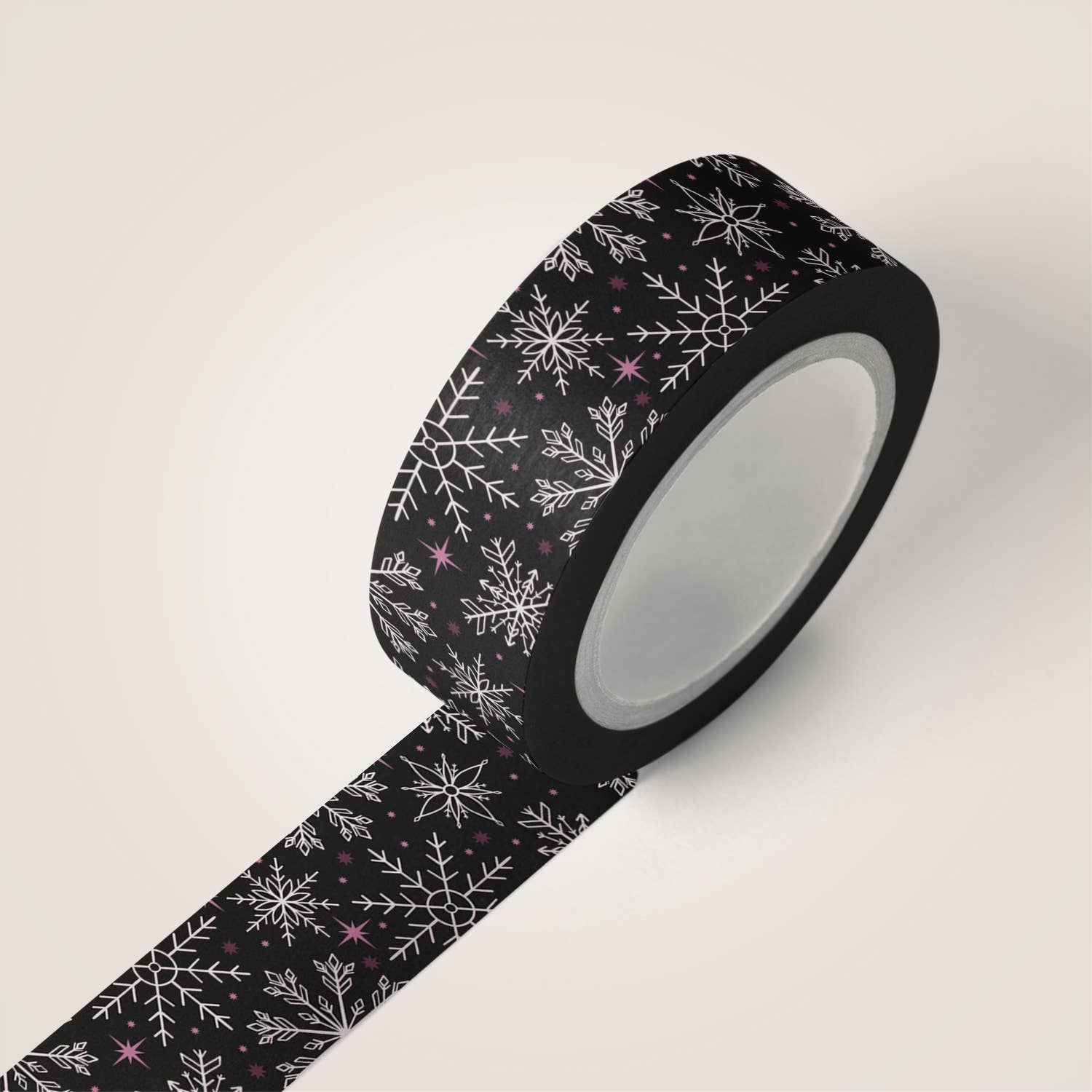 Add a cool touch to your projects with our Cosmic Frost washi tape! This dreamy design features intricate white snowflakes and celestial stars, all set against a deep, cosmic night sky with soft touches of lilac and pink. Whether you're wrapping gifts, journaling, or decorating, this tape will add a magical winter wonderland vibe to anything it touches. Each roll of washi tape is made with premium Japanese paper and adhesive, ensuring high-quality and long-lasting use.
