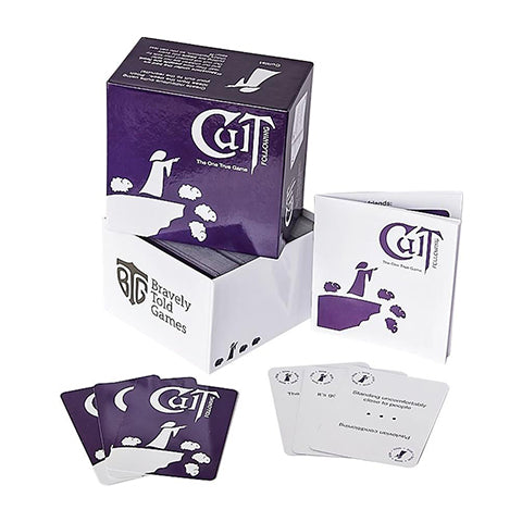 Do other games leave you feeling...empty inside? Cult Following: The One True Game is a storytelling game where you convince your friends that the eternal truths that you just made up should command devotion, while their fanatical ravings are just plain ridiculous. Choose ideas from a hand of cards, bind them together into a ridiculous cult, and pitch it to your friends. Answer pointed questions from potential recruits, defending your own ideas while attacking the lies of the other cultists. Describe how your cult ascends into fame and fortune, while others languish in obscurity! Will your friends heed your warning about timid forest creatures, shapeshifting and unspeakable horrors, or will another cult steal your rightful followers?