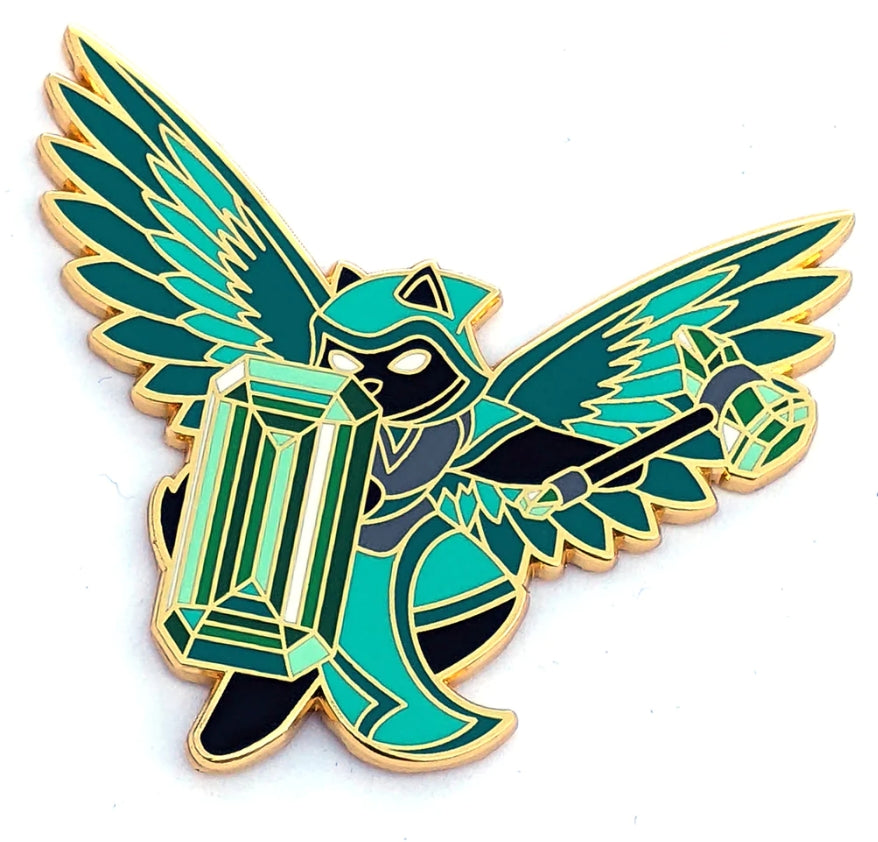 This design is of a winged Cleric cat wielding an emerald shield and hammer. Yes, Clerics are often healers, but they can hold their own in melee!