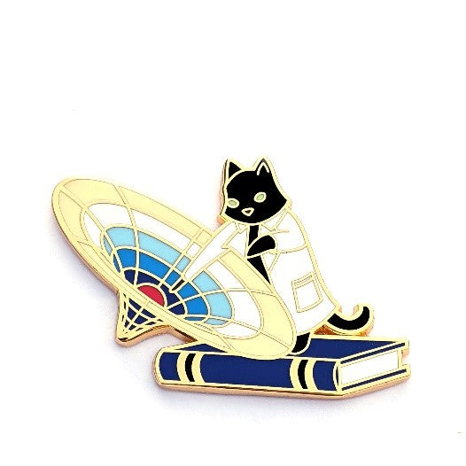 A scientist cat being pulled into a gravity well.