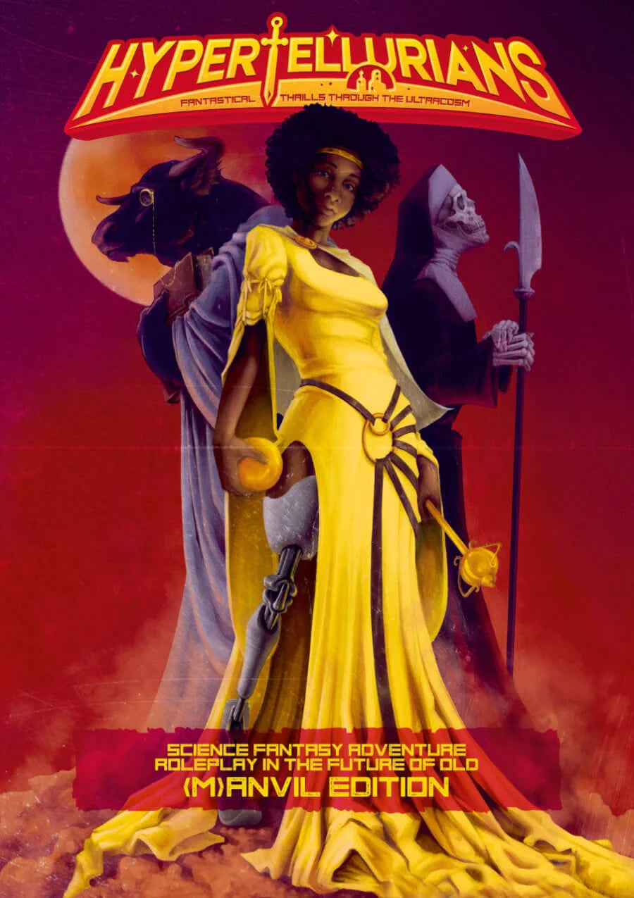 In this game the players portray the Hypertellurians: adventuring the length and breadth of the Ultracosm, in retro science fantasy style. Take control of one of six archetypes, and choose or create a unique concept by layering on fun, inventive, and story-driving powers.