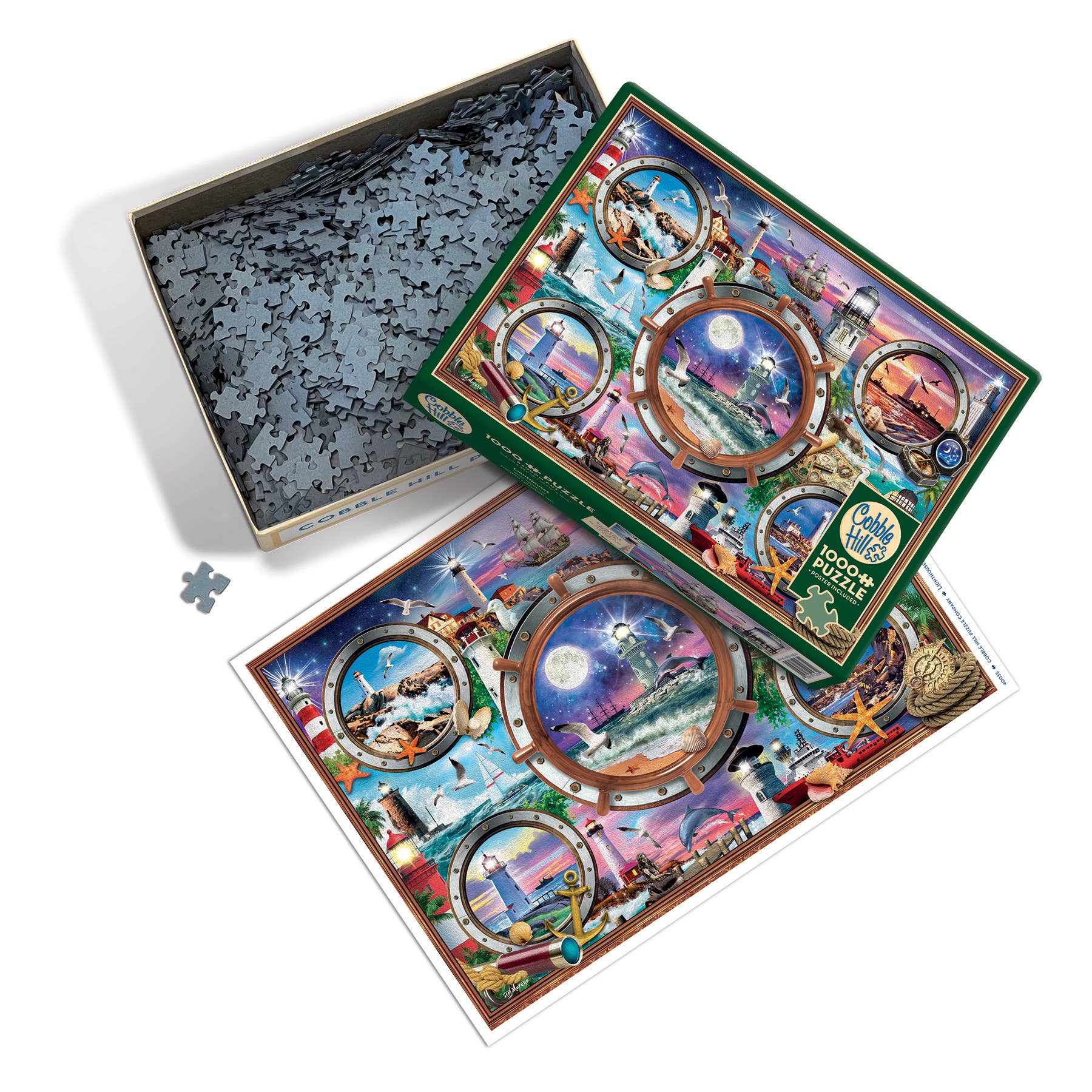 For our ocean lovers, we have Lighthouses, a collage of many beautiful beacons of light. The lighthouses are not just in the portals, but throughout the 1000 piece scenic puzzle with a background full of all things nautical and ocean worthy like sailboats, dolphins, seagulls, and maybe even treasure - if you count the pearl in the oyster!