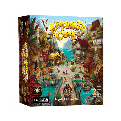 Welcome ashore! Merchants Cove is a highly asymmetrical eurogame where each player assumes the role of a different fantasy merchant with a unique shop. The merchants contend to sell their goods to the arriving adventurers at the coves piers-the most famous markets in the Five Realms. Each player uses their own set of role-specific components and gameplay mechanisms to produce their goods, increase their shops efficiency, and-most importantly-get rich! Though the merchants work independently in their specialized shops, they compete against each other to attract customers, influence the demands for goods, and secure sponsorships from the four faction halls. To get an edge, merchants can employ local townsfolk to work in their shops as staff. Or if they dare to cut corners, they can gain leverage from the corrupt lair of rogues-but at what cost? After three days of selling at the markets, the wealthiest merchant shall be declared the winner!