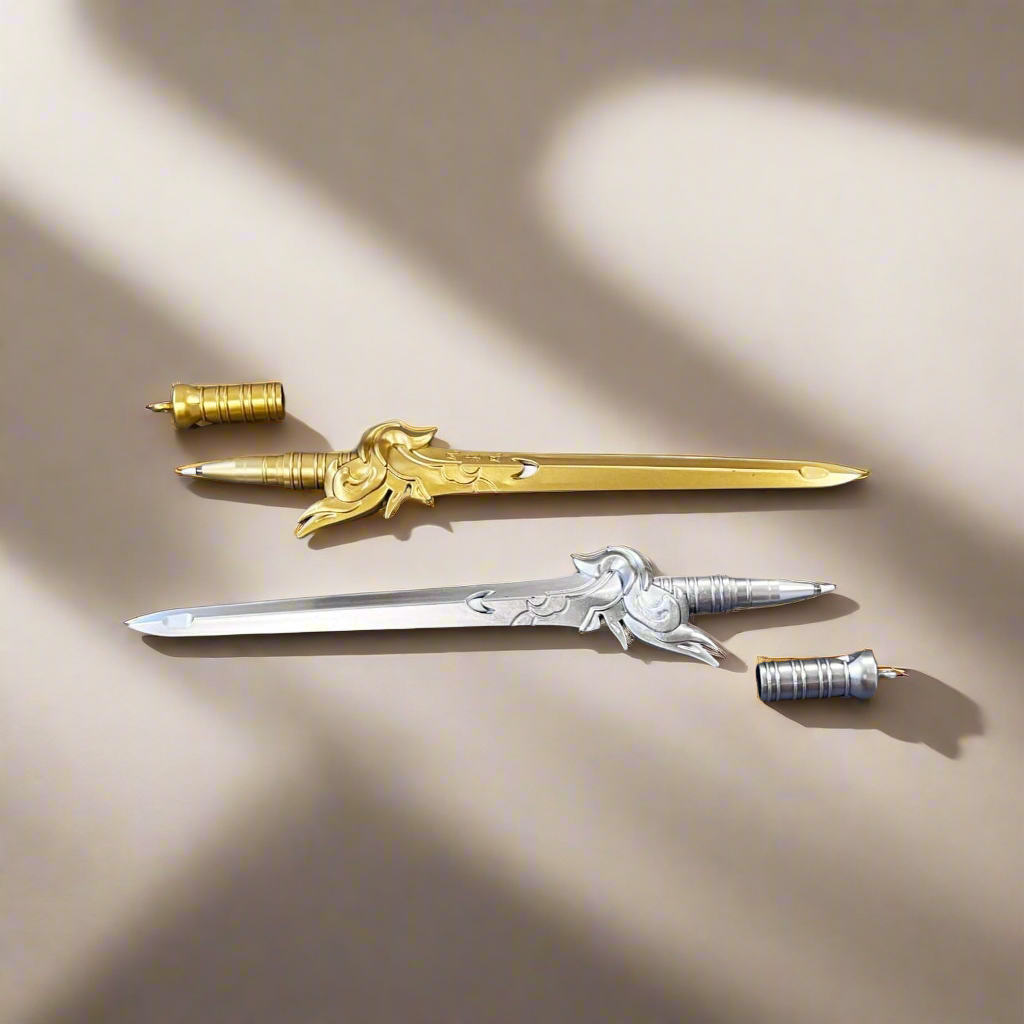 Crafted from lightweight plastic with a metallic finish, this sword pen is comfortable to hold and easy to write with. Writes with smooth black ink. Lightweight plastic material. Comfortable to hold and write with.