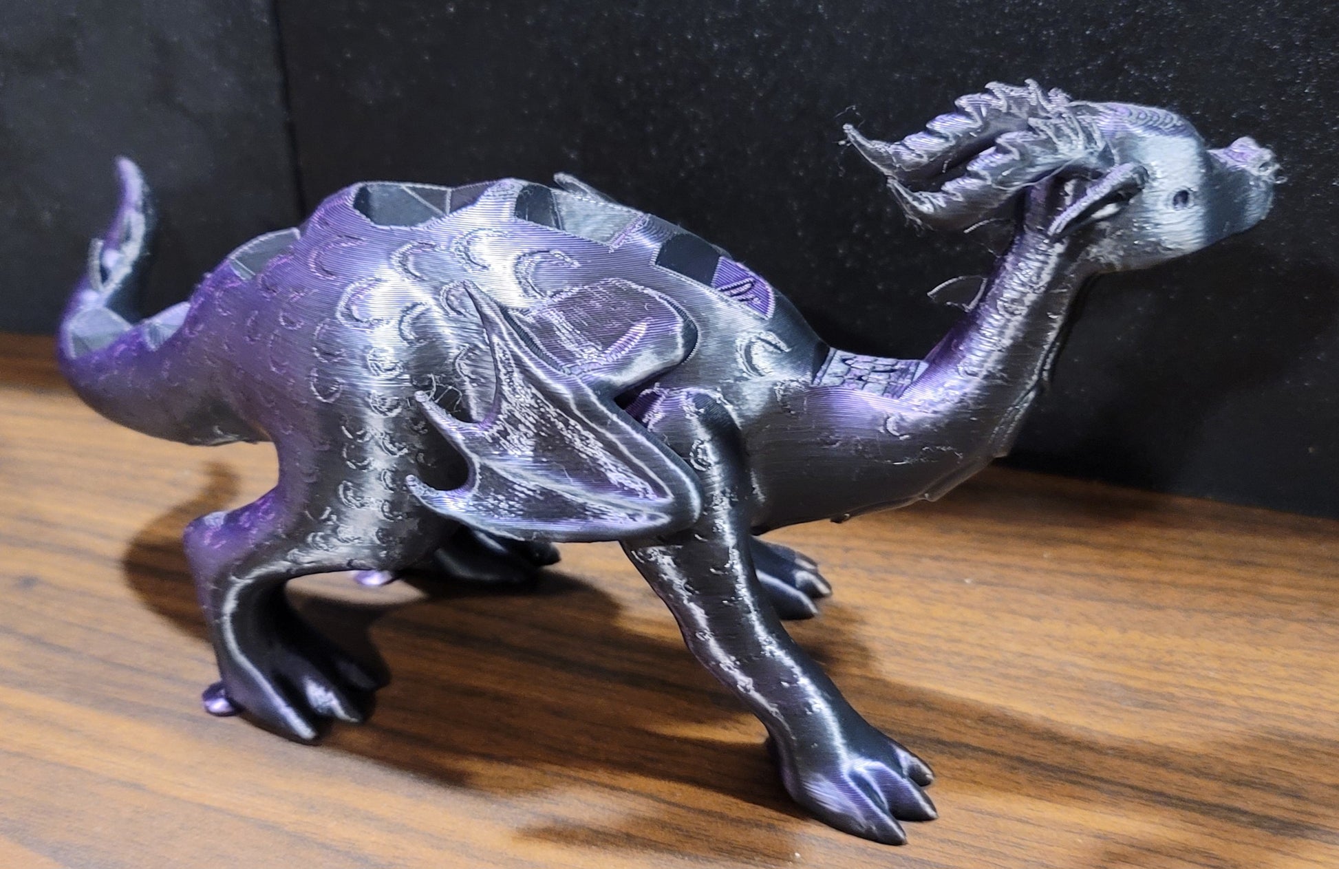 Meet Baby Polly - a dice loving dragon who can't wait to display your dice for you. With 7 labeled slots perfectly sized for a full dice set along their back, Polly is a fantastic way for a fantasy lover to display that special set of dice!