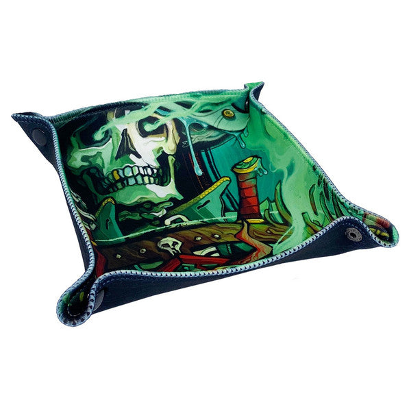 The Rapscallion Dice Tray is a beautiful and useful accessory for Rapscallion, the roleplaying game. Made of a full-color flexible rubber sheet with a fabric cover and buttons, it easily assembles into a beautiful rolling dice tray at your table. The dice tray features incredible art from Whistler—the writer and designer of Rapscallion—that serves as the perfect backdrop for your journeys on the Great Sea!