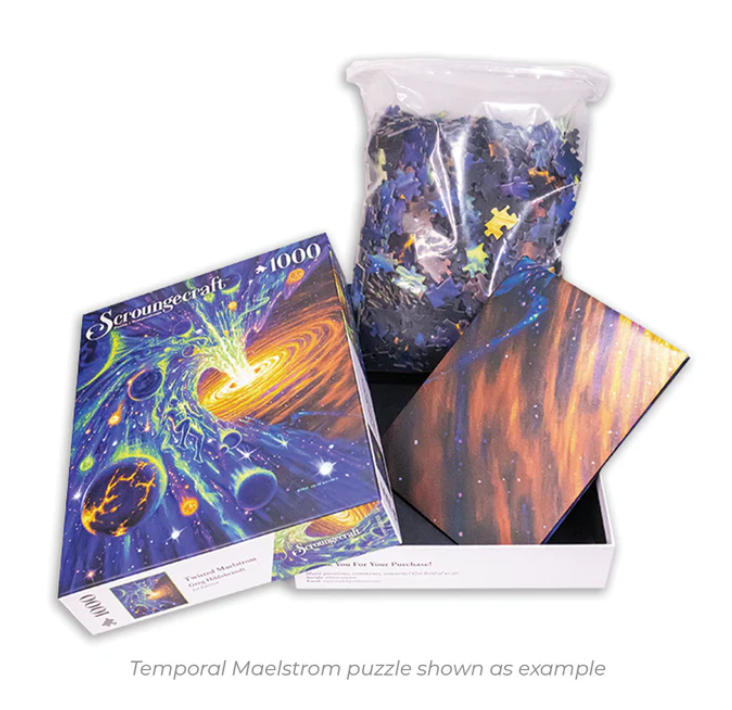Scroungecraft Series 2 includes six new jigsaw puzzles featuring vibrant, handpainted pieces of fantasy artwork packed with detail -a delight to assemble at your table!