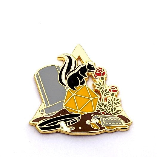 This design is of a skunk standing on a D20 taking time to smell the roses. They may be in the middle of a pile of trash, but they can still take a moment of enjoyment for themselves.