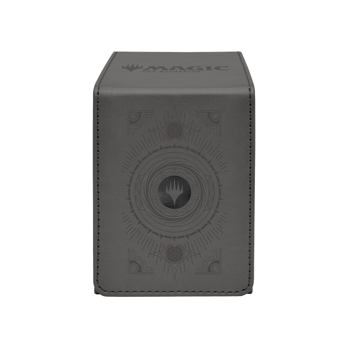 The Alcove Flip Deck Box for Magic: The Gathering features a vibrant, full-color leatherette finish with a stylized debossed design and spot mirror foil accents. The strong magnetic closure provides secure storage while the dual thumb notches allow for easy access to your deck. This deck box holds up to 100 standard size trading cards double-sleeved in Ultra PRO Deck Protector sleeves.