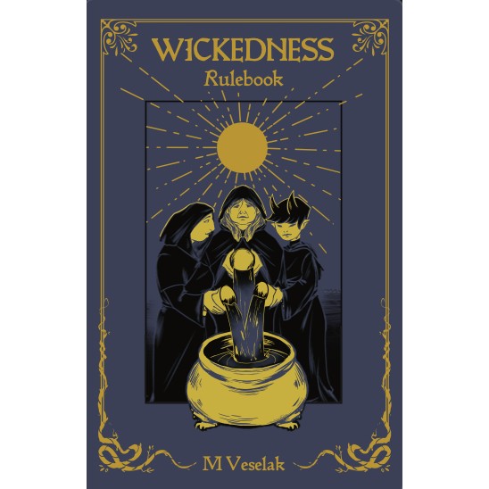 This product is part of our Pandemonium with PRIDE program; 25% of the proceeds will be donated to BAGLY (Boston Alliance for Gay, Lesbian, Trans Youths).A quaint home packed to the rafters with trinkets, curiosities, and the occasional miracle. A sleepy kingdom on the cusp of disaster. A wicker gate hanging by its hinges, with Somewhere Else lurking beyond. Three guardians who can save everything-- if they can stop squabbling long enough.Wickedness is a peculiar tabletop game written for exactly three players and one tarot deck, with no dice and no GM. Together, you'll form a coven between three mystical archetypes (the innocent and gentle Pure Heart, the volatile, revelrous Wild Spirit, and the uptight, scholarly Old Soul) and try to keep your world of magic and mystery in balance with the mundane world, in spite of its ignorance, poverty and violence. The Game Wickedness is played in three acts: in the first, players discover their coven, the sanctuary they call home, a mundane fantasy nation, and the treacherous underworld lurking beneath it. Each player will be assigned one of the three coven archetypes (The Pure Heart, The Old Soul, and The Wild Spirit) by the tarot deck, and then together they’ll create the world where they live, and the underworld's strange laws and denizens. Finally, they’ll ask heavy-hitting questions about the covens’ relationships to one another. In the second chapter, the cards point to a series of challenges detailed in the games’ interpretation Guide, and the players respond: the coven can fall prey to their archetype-specific follies in order to collect cards, spend the cards to solve challenges with wisdom, or use the vast and terrible magic powers at their fingertips-- which is miraculous, but costs the user a piece of their essential nature, striking out and maybe even blackening and replacing a truth on their character sheet. So the players have to strike a balance between keeping the worlds from falling into darkness, and keeping one another from falling apart. If the scales tip too far in any direction, it’s entirely possible for the game to come to an abrupt and apocalyptic end. The final chapter tempts the coven to go their separate ways, but also offers them opportunities to learn from their past mistakes and heal, and finally they'll face their ultimate fates, determining the future of the kingdom, the underworld, and the art of magic itself. Wickedness uses a bespoke tarot-drawing system loosely inspired by Jay Dragon’s Sleepaway, and is a distant descendent of the Belonging Outside Belonging framework developed by Avery Alder and Benjamin Rosenbaum. |