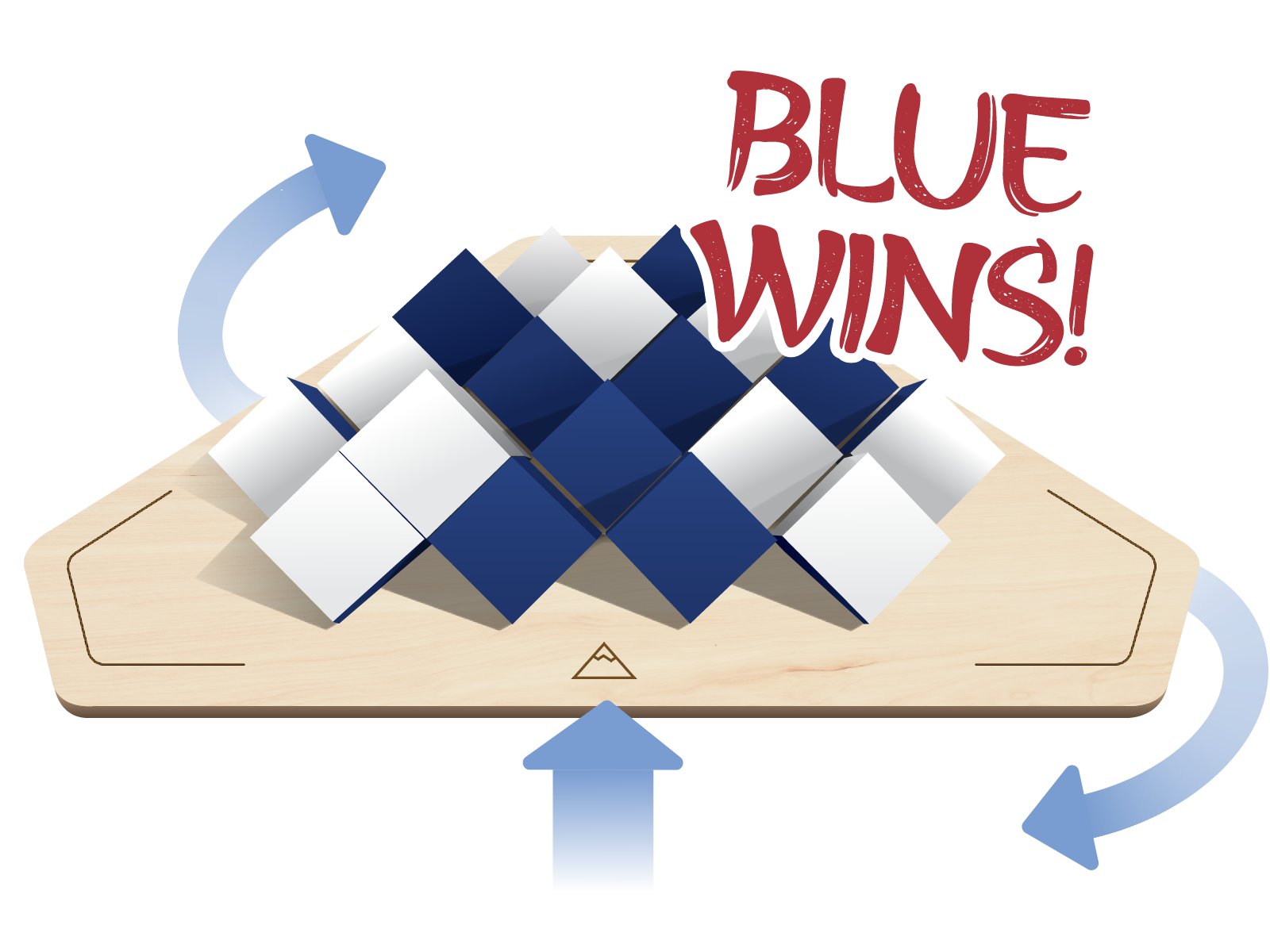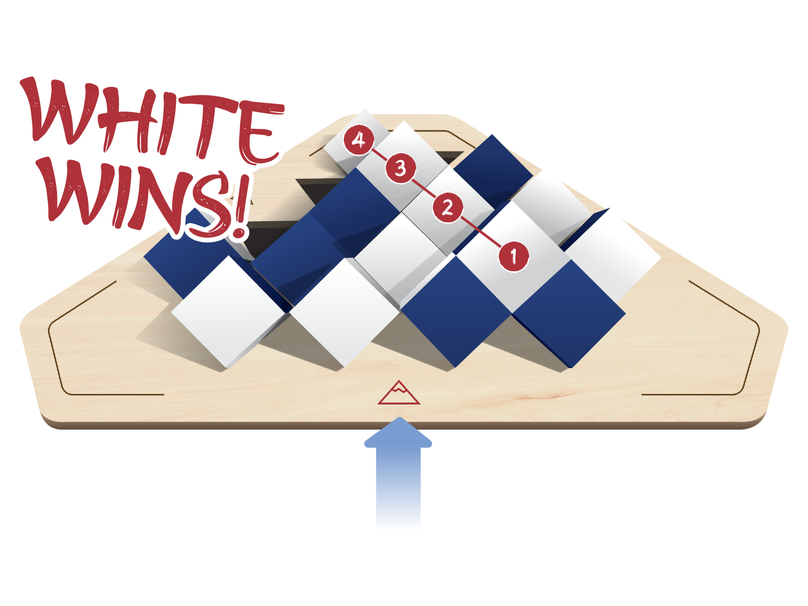 The player who forms a line of four consecutive cubes of their color, from any three perspectives, is the winner!